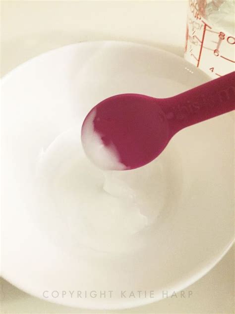 Tambahkan cairan lensa kontak sedikit demi sedikit sambil terus diaduk. Aduk terus hingga adonan mulai mengental dan lengket.
